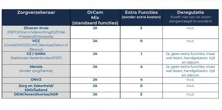 De OrCam Mix met alleen leesfunctie wordt nu onder voorwaarden, zoals bij conventionele voorleesapparaten, door alle zorgverzekeraars vergoed. Met de OrCam Mix kunt u kiezen welke functie u naast de standaard functies wilt toevoegen! Standaard is de OrCam Mix uitgerust met de leesfunctie (OCR), gebaren, horloge beweging en de talen Nederlands en Engels. Afhankelijk van de zorgverzekeraar kunt u al dan niet onderstaande extra functies toevoegen.