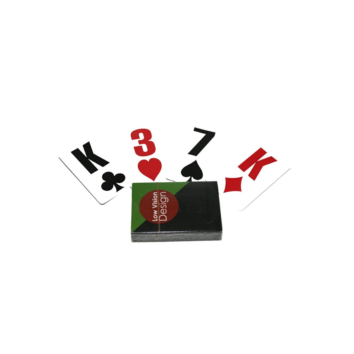 Speelkaarten met Mega symbolen van het merk Low Vision Design, speciaal ontwikkeld voor slechtzienden. Deze speelkaarten bevatten de grootste opdruk van alle speelkaarten. Ideaal in gebruik in combinatie met een kaartenhouder.