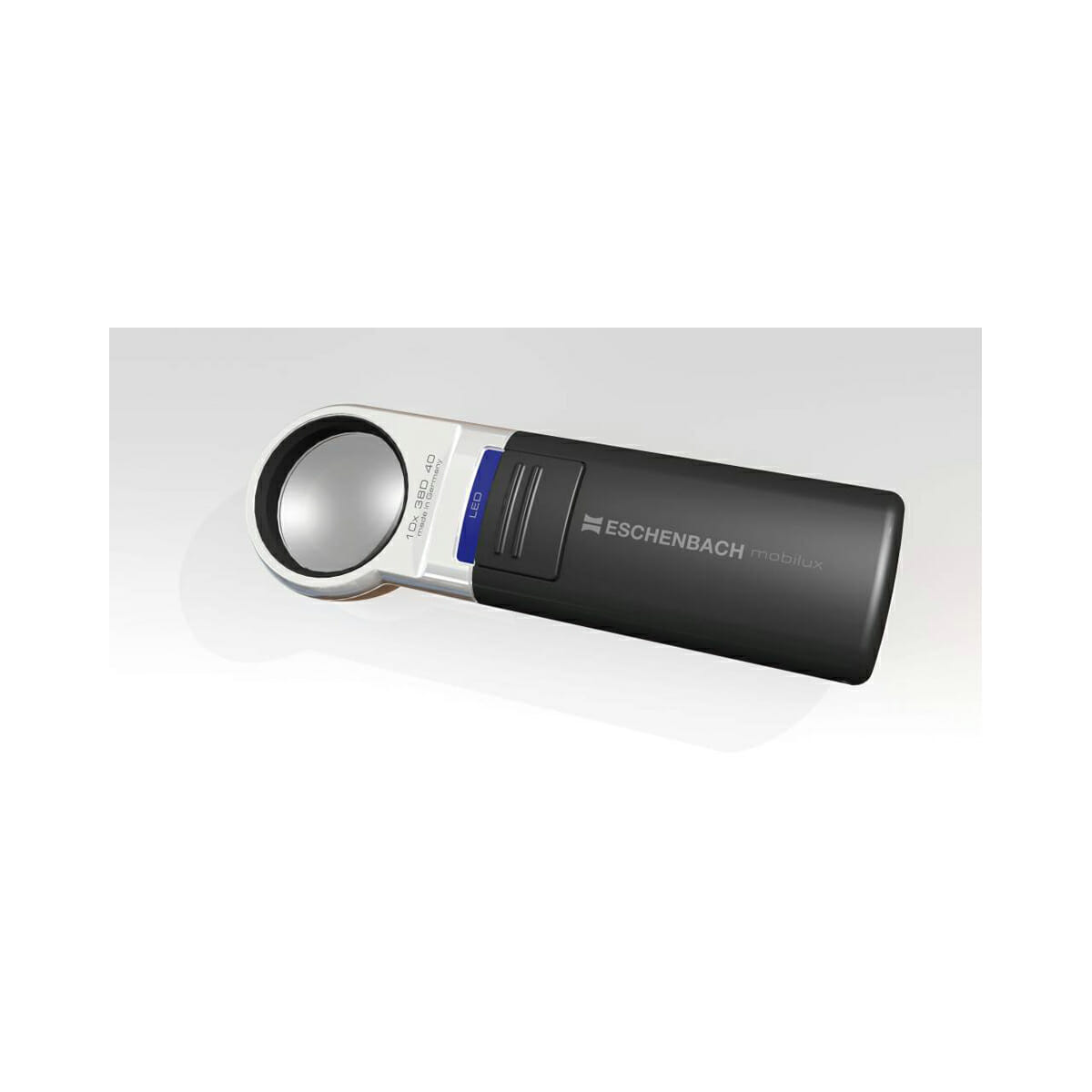 Eschenbach Mobilux met LED verlichting. Handzaam model, gemakkelijk te bedienen met de grote schakelaar. Diameter lens 35mm. vergrotingsfactor 12,5x (50 dioptrie).