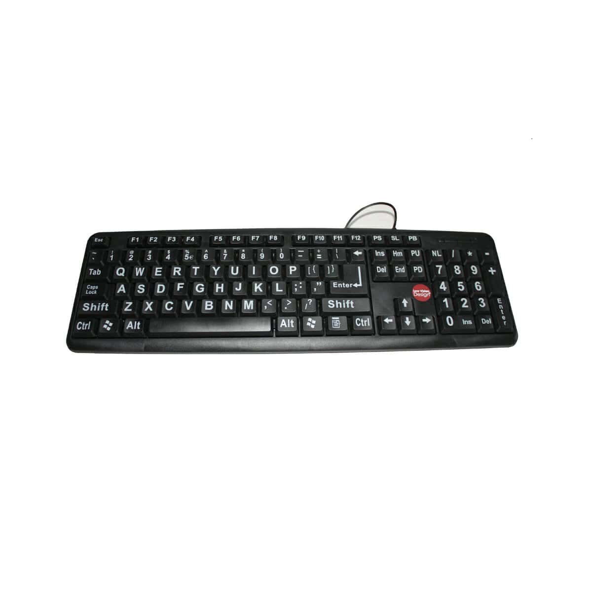Dit Grootletter Toetsenbord met zwarte achtergrond en USB aansluiting is voorzien van extra grote witte letters en cijfers. Het enige wat u hoeft te doen om het toetsenbord werkend te krijgen is de USB kabel in de computer te pluggen.