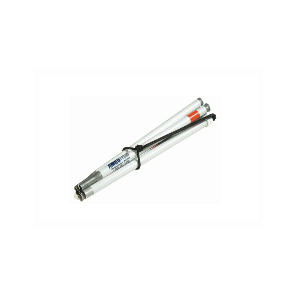 Ambutech herkenningsstok in 5 delen opvouwbaar en met een vaste lengte van 95 centimeter. Voorzien van rode bandjes ter herkenning.