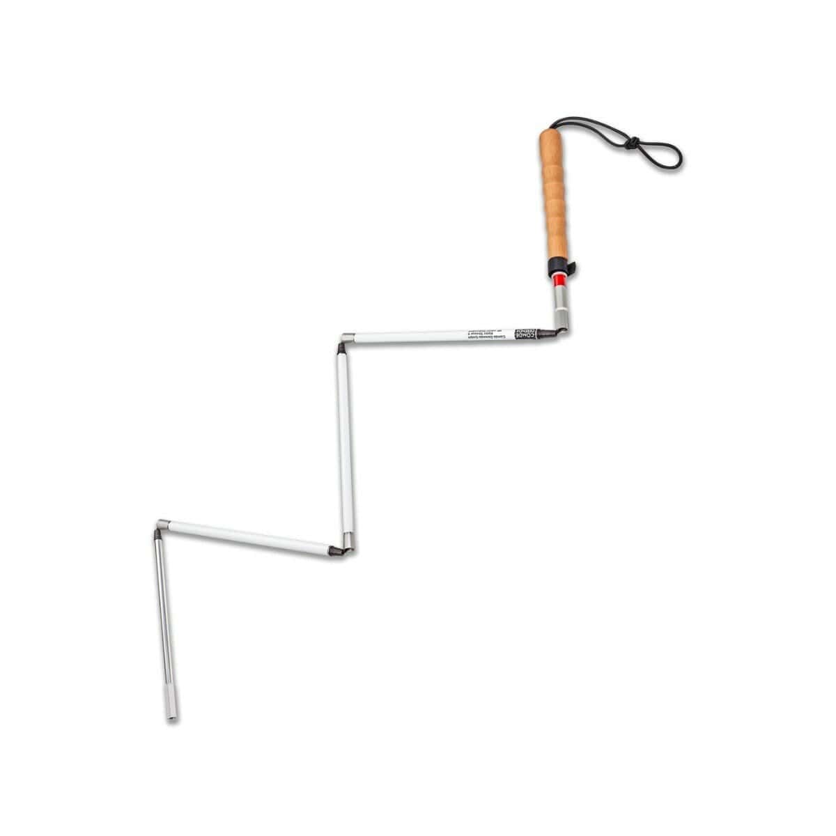 Deze taststok is in 5 delen opvouwbaar met een uitschuifbaar beuken handvat waardoor de lengte in te stellen is van 115 tot 130 cm. Volledig opgevouwen en ingeschoven heeft deze taststok een lengte van 27 cm.
